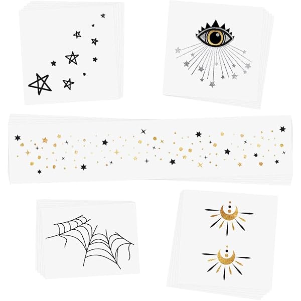 Amazon Com Resting Witch Face Variety Set Of 25 Assorted Halloween Inspired Premium Waterproof Metallic Gold Silver Jewelry Temporary Foil Face Flash Tattoos Face Sparkle Face Glitter Metallic Tattoo Eye Jewel Face